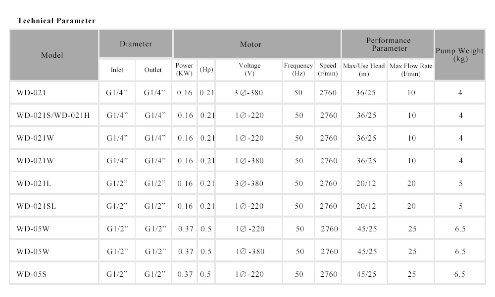 WD-021W/S is specialized developed for welding - machine industrial with the character of small volume ,fine appearance, heat-resistance, and low noisy. Pump motor was import German technology of small motor base and big power which can save more installation space for customer.